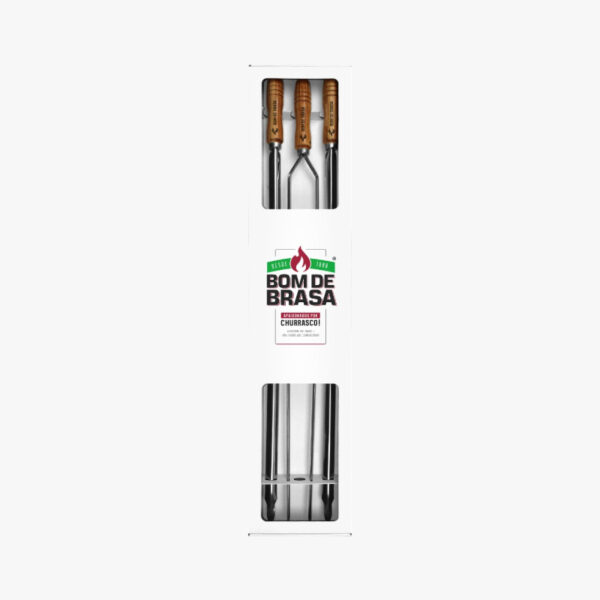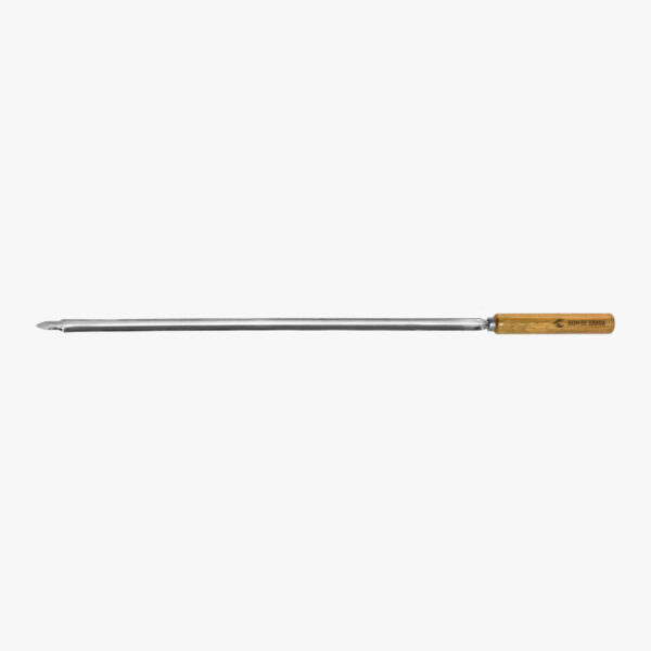 A set of Brazilian-style skewers. Extra sturdy, long and large, these stainless steel Brazilian-style skewers are a true delight for any die-hard griller. They can handle a mountain of steaks, lamb ham or any other serious steak. The meat takes on a very gorgeous golden crust and a wonderful campfire aroma as it cooks on a skewer that is turned frequently and constantly exposed to fire.