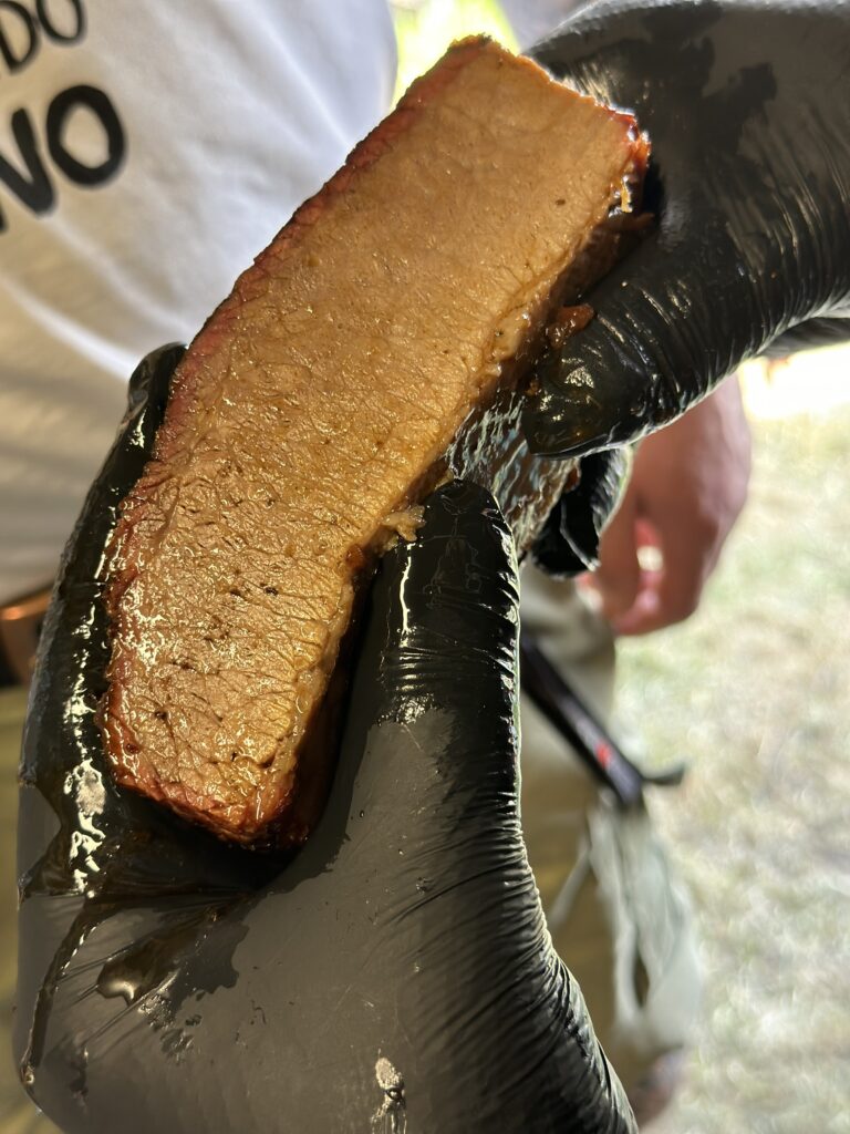 - Išimkite mėsą ir leiskite jai ilsėtis apie 40 min., o tuomet plonai supjaustykite.