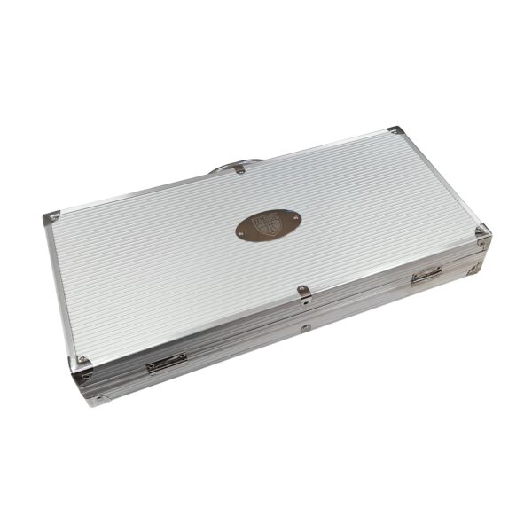 Set of grilling tools Zalgiris. Top quality wood and stainless steel grilling tools in an aluminium case with Zalgiris Basketball Club logo. The set includes: