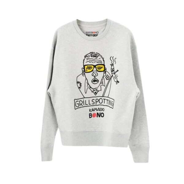 A high-quality and comfy grey sweatshirt with the printed text ‘Grillspotting’ – for both men and women. Inner side with fluff. This unique sweatshirt is co-designed with the creative and artistic brand EgyBoy.